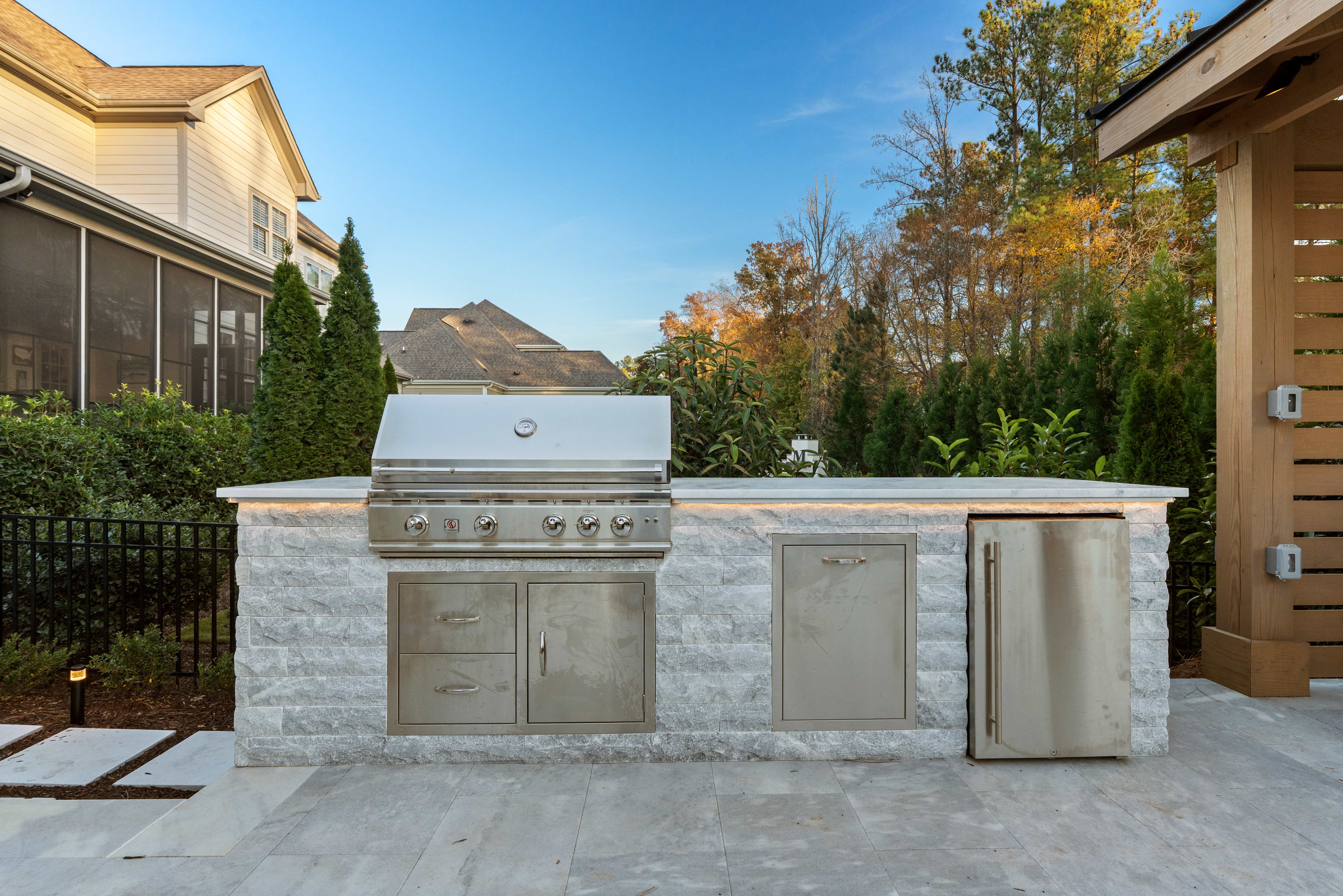 Your outdoor kitchen should feel intentional, not improvised. We craft spaces with integrated appliances, stone finishes, custom islands, and purposeful storage — creating a refined, functional centerpiece for your backyard.