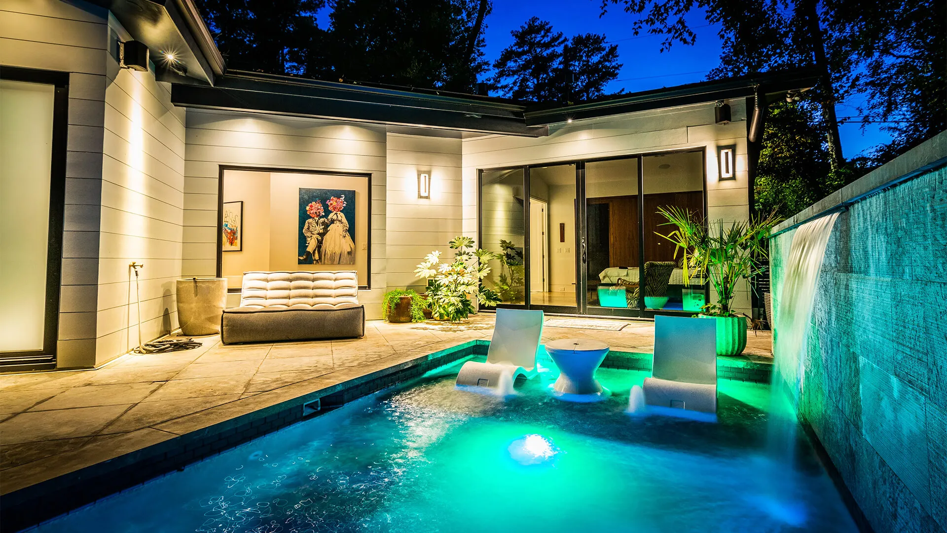 In the backyard, we engineered the deck to support marble tile that reflects the home’s aesthetic while providing a cool, comfortable surface around the pool. The pool itself was raised fifteen feet to align with the level of the primary bedroom, creating a private and relaxing retreat designed specifically for the homeowners. The result is a cohesive outdoor environment where architecture, landscape, and function work together seamlessly.